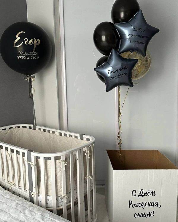 - 1 коробка для шаров с индивидуальной надписью