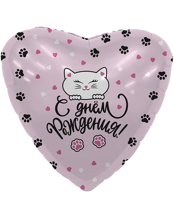 Главная страница » Каталог » Шарики из фольги » Шары с днем рождения » Сердце С Днем Рождения! (котенок и лапки)